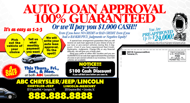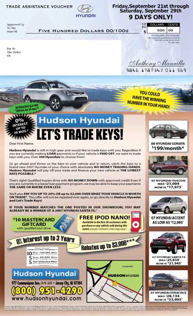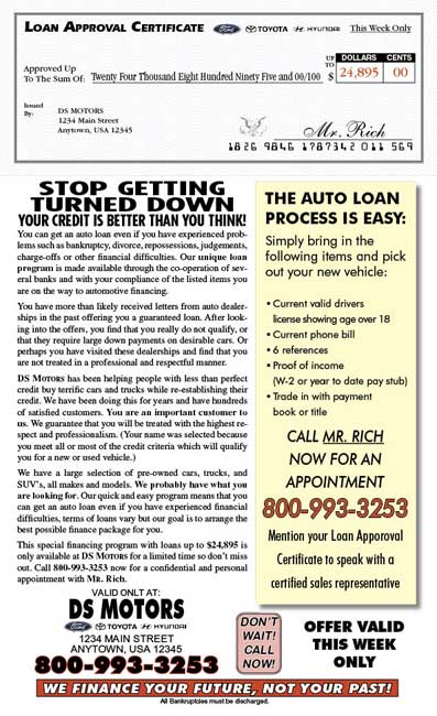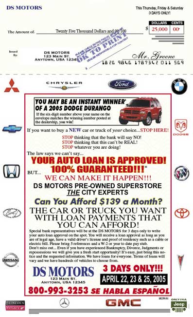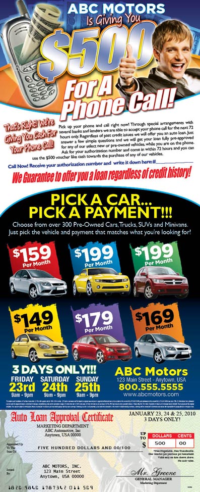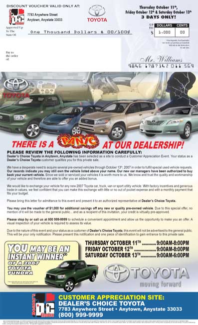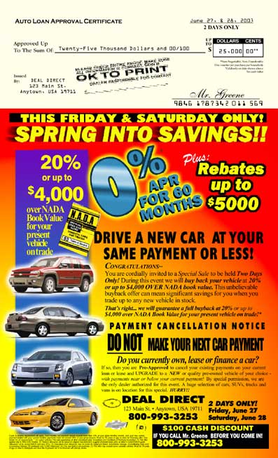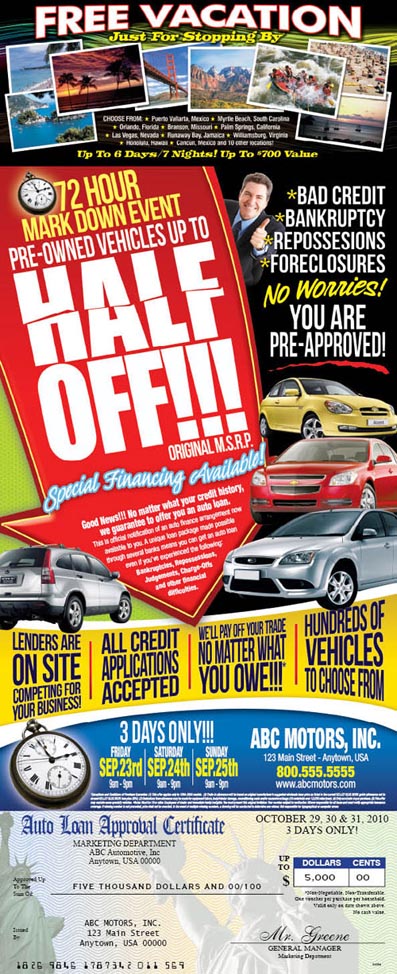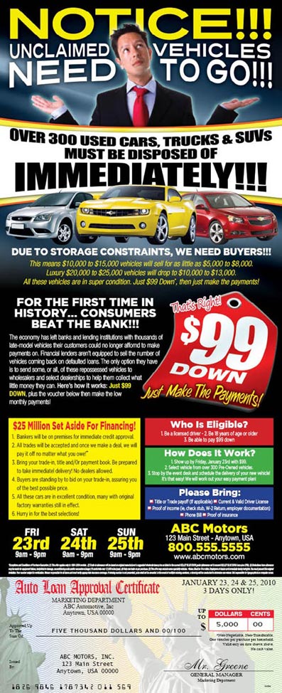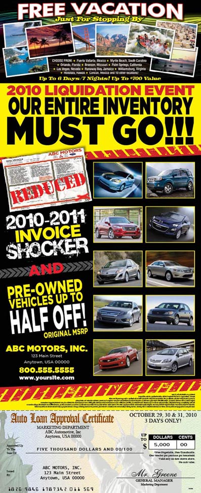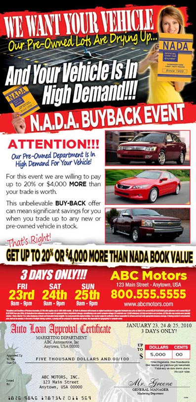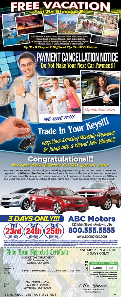 10K Direct Mail Marketing Event - We deliver a 10,000pc 1st Class Direct Mail Event to a carefully prepared Double-Opt-In Auto Database list of prospective automotive buyers (New & Pre-Owned).