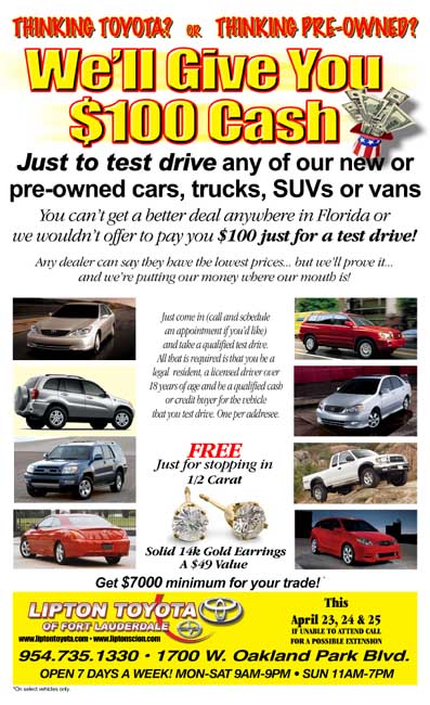 We deliver (FREE OF CHARGE) an additional 2,500 direct mail pieces, targeting a different Auto-list criteria. That's a total of 12,500 direct mail pieces delivered for the price of 10K.