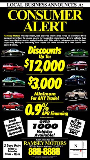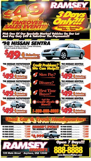 Do you want your newspaper ads to work for you? Want your automotive advertising to draw readers attention? At RamseyGlobal we make advertising for newspapers across the country more affordable, interesting and eye-catching!